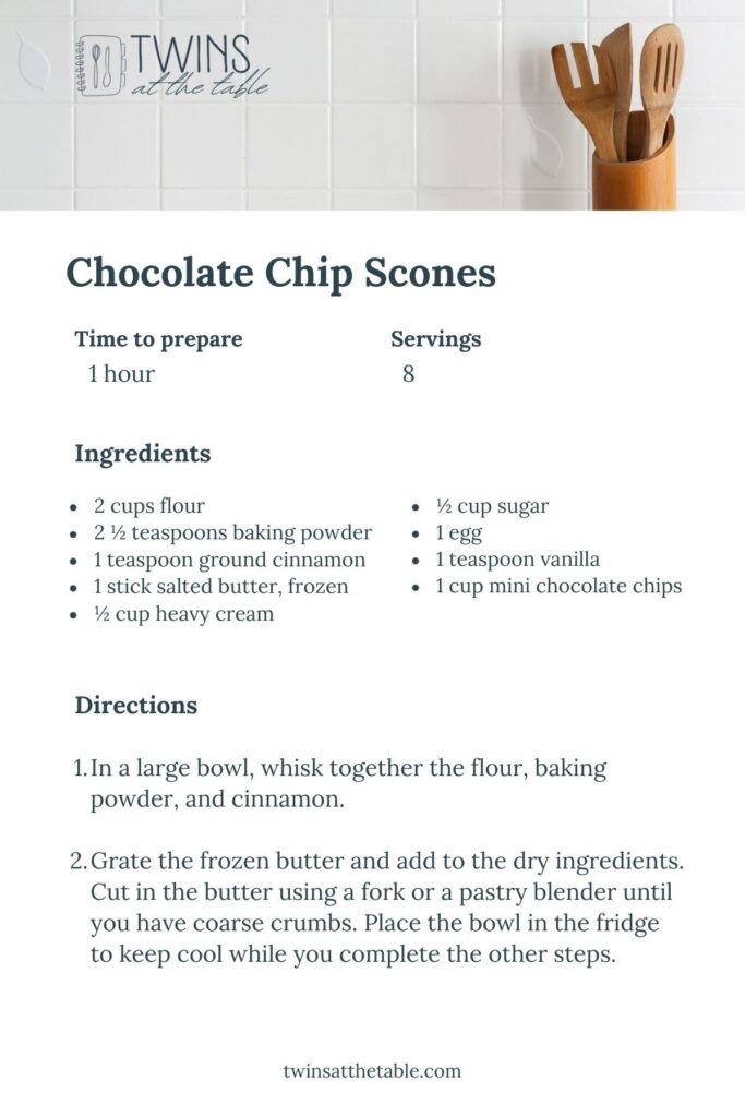 Enjoyable both warm or at room temperature, these scones pair great with coffee or tea. Chocolate chip scones are simple to make, versatile, and perfect for brunch or an everyday treat!