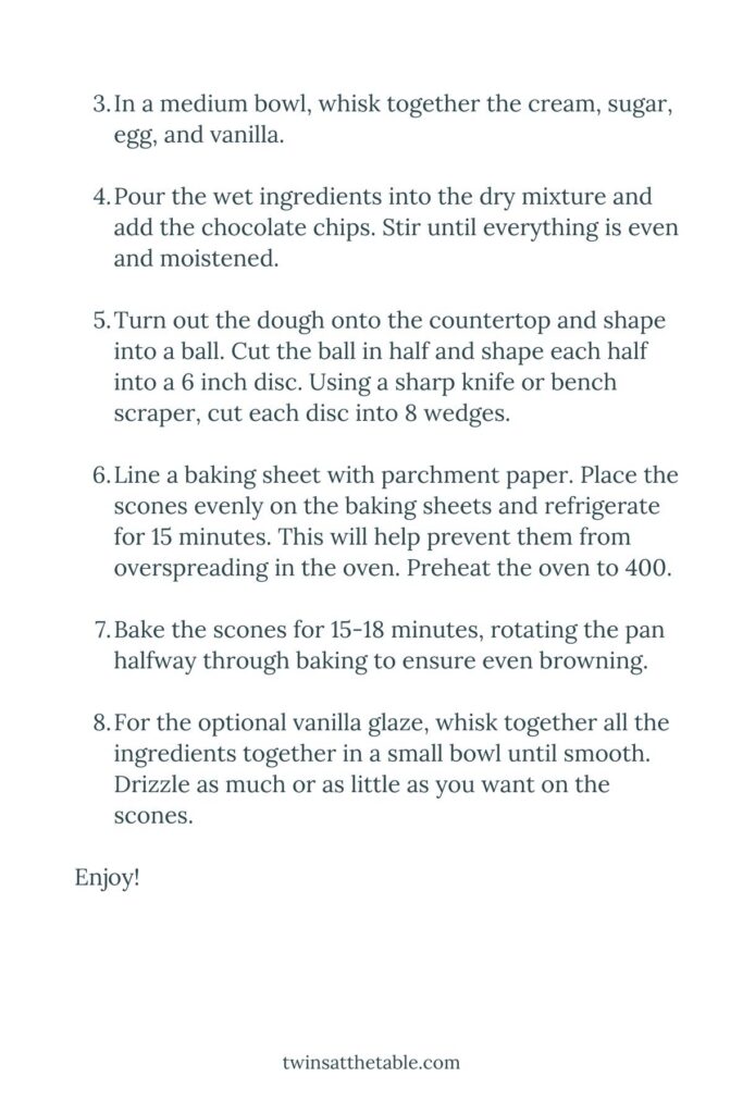 Glaze: For the optional glaze, whisk together all the ingredients together in a small bowl until smooth. Allow the scones to cool for at least ten minutes before drizzling the glaze on top.