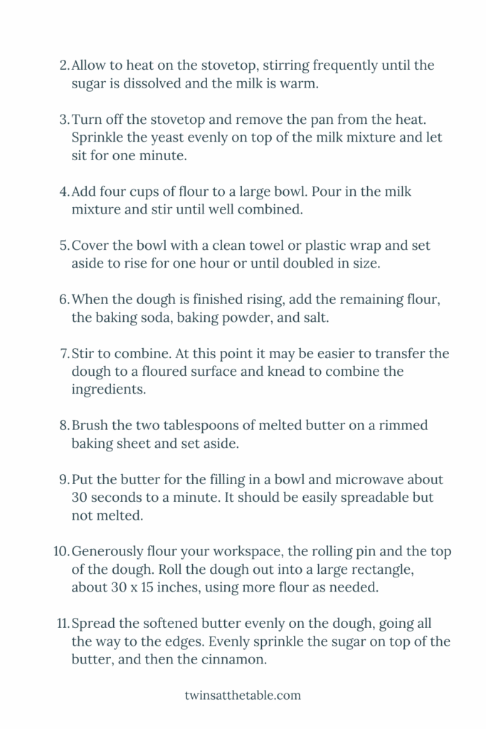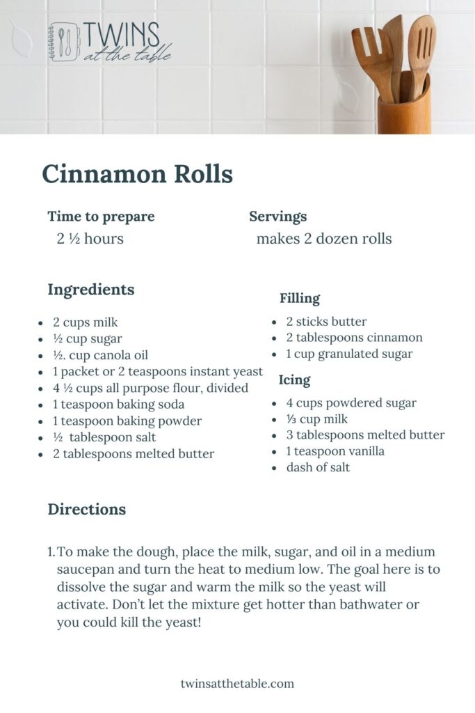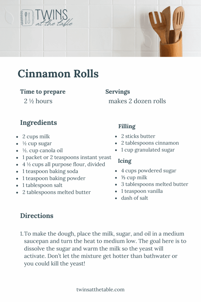 Twin Tip: Short on time? Prepare the dough ahead of time and freeze it. When you’re ready to bake, let the dough thaw, then continue with the recipe as directed for fresh, homemade cinnamon rolls with less day-of prep.