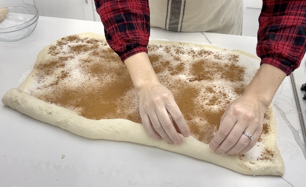 12. Roll the dough, starting from the top and working towards yourself, keeping it tight.