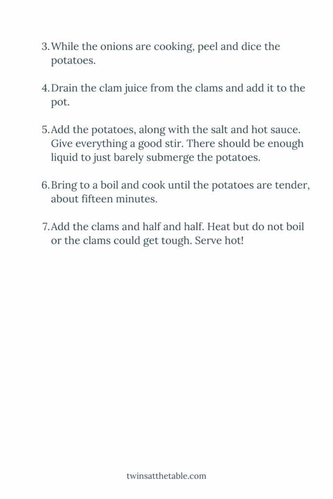 - Add the clams and half and half. Heat but do not boil or the clams could get tough. Serve hot!