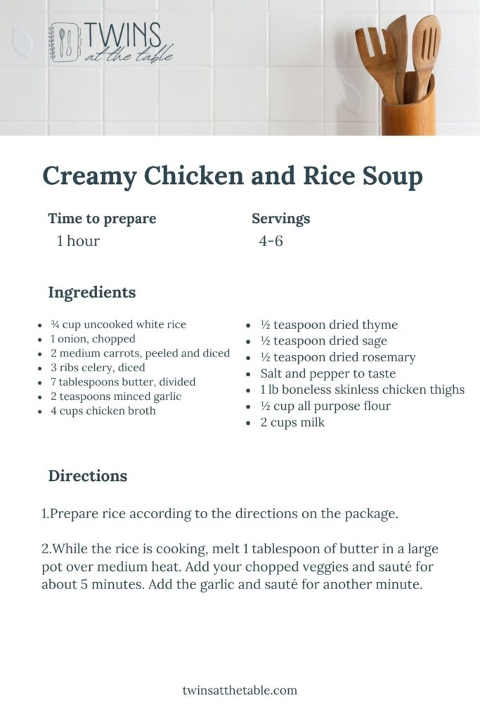 At Twins at the Table, we believe the heart of your home starts in the kitchen. Today, we’re sharing a simple yet comforting Chicken and Rice Soup recipe that’s perfect for busy new cooks or anyone looking to create a warm, homemade meal. Whether you’re cooking for your family or cozying up with a bowl yourself, this recipe will deliver both flavor and joy to your table!