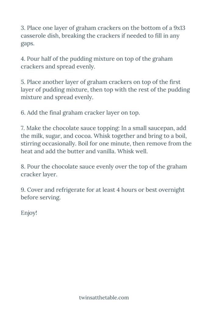 - Repeat: Add another layer of graham crackers and top with the remaining pudding
