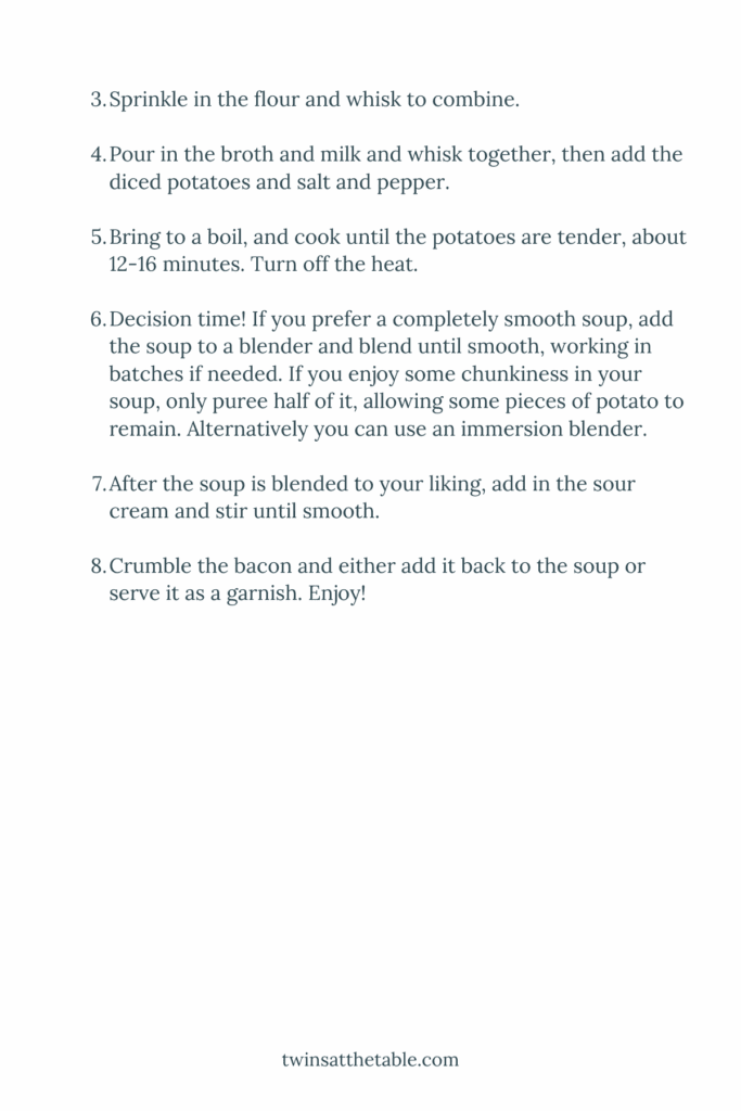 - Crumble the bacon and either add it back to the soup or serve it as a garnish. Enjoy!